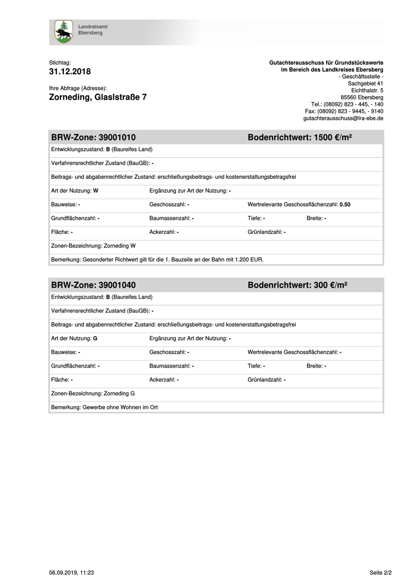 Aktueller Bodenrichtwert vom Landratsamt Ebersberg liegt uns vor.