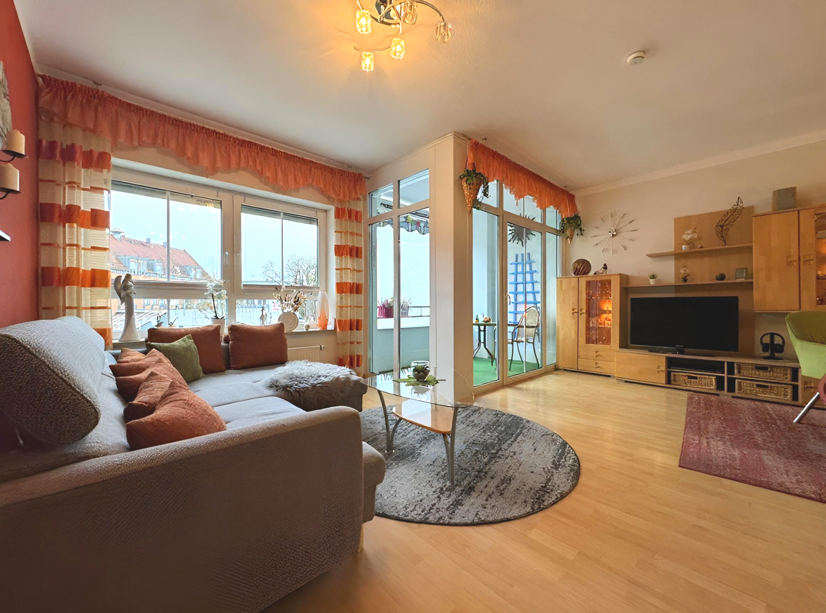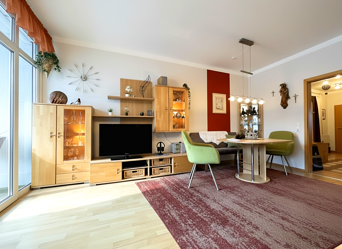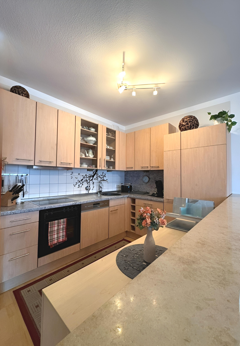 In zentraler Lage von Gersthofen empfängt Sie eine gepflegte, liebevoll ausgestattete Wohnung, die durch ihre hohe Deckenhöhe sofort ein besonders angenehmes und großzügiges Raumgefühl vermittelt. Die Ausstattung ist auf Wohnkomfort ausgelegt: eine moderne Einbauküche, ein vollständig möbliertes Interieur, das auf Wunsch übernommen werden kann, ein helles Wohnzimmer mit elektrischen Jalousien und eine Loggia mit Markise, welche als geschützter Ruheplatz zu jeder Jahreszeit einlädt. Das große Badezimmer mit einem außergewöhnlich geräumigen, barrierefreien Duschplatz (120x120 cm) mit Sitzgelegenheit bietet spürbaren Komfort und rundet den wertigen Gesamteindruck ab. Stufenloser Zugang, Isolierglasfenster und die solide Bauweise schaffen ein Wohnumfeld, das sich sowohl heute als auch in Zukunft einfach gut anfühlt. Zwei Stellplätze in der weitläufigen Tiefgarage ermöglichen bequemes Parken, und dank Lift gelangen Sie stets trocken und barrierefrei zur Wohnung. Der Außenzugang über den Laubengang sorgt für zusätzliche Privatsphäre. Besonders beruhigend ist die im Haus befindliche Sozialstation sowie die Möglichkeit einer seniorengerechten Tagesbetreuung – ein wertvoller Pluspunkt, der diese Wohnung zu einer langfristig sicheren, komfortablen und zukunftsorientierten Wohnlösung macht.